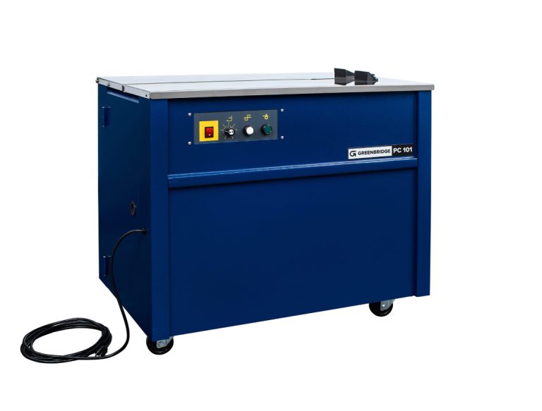 La PC1000 es una flejadora con arco de uso industrial diseñada para tensar, sellar y cortar flejes de manera rápida y precisa en paquetes de distintos tamaños y formas. Su diseño con arco permite un manejo fácil del fleje alrededor del producto, asegurando un amarre uniforme y estable, ideal para líneas de empaque de alto volumen.